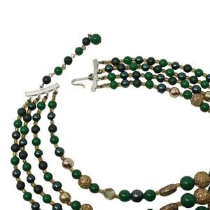 Vintage 1950s 4 Strand Green and Gold Textured Bead Necklace