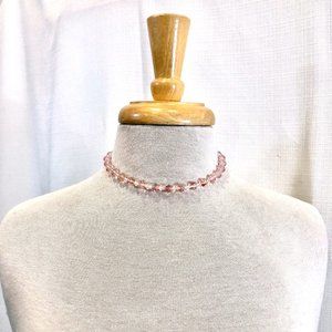 Vintage 1950s 50s Light Pink Crystal Choker Necklace Size XS S