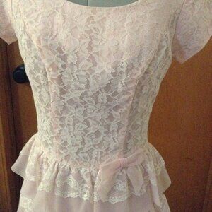 Vintage 1950s '50s Pink Lined Cupcake Layered Tiered Lace Cocktail Dress