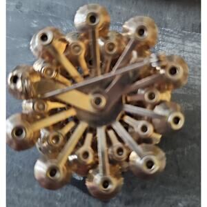 Dramatic domed cluster design made of brilliant aurora borealis (AB) rhinestones and luminous faux pearls. The AB stones-likely Swarovski crystals - flash rainbow hues.