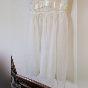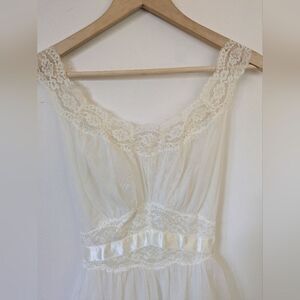 Vintage 1950s 60s Vanity Fair Elegant Cream Lace Slip Nightgown S Small 32