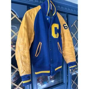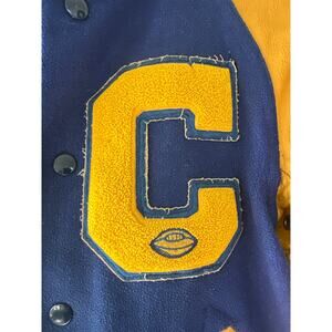 Vintage 1950s 60s Whiting LA Leather Snap Letterman Varsity Jacket Blue Yellow C