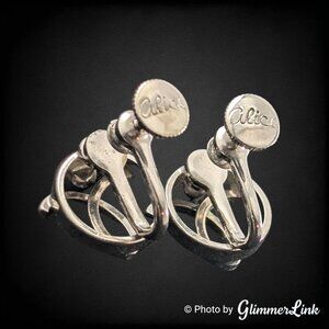 Vintage 1950s Alice Silver Tone Modernist Screw Back Earrings Signed