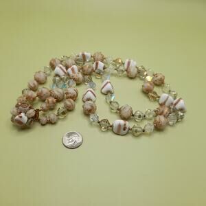 Vintage 1950s Art Glass Beaded Necklace with Aurora Borealis Crystals, 19 Inches