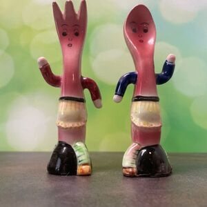 Vintage 1950s Artmark Anthropomorphic Fork & Spoon Salt & Pepper Set Fork/Spoon
