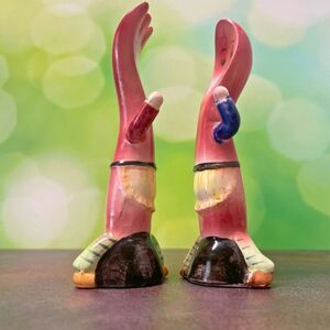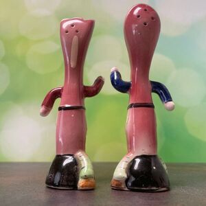 A delightful and whimsical pair that adds charm to any table! Made by Artmark, a Chicago-based importer known for distributing high-quality Japanese ceramics and novelty items in the mid-20th century. These shakers capture the mid-century love for anthropomorphic kitchenware, where everyday objects were given expressive faces and personalities.