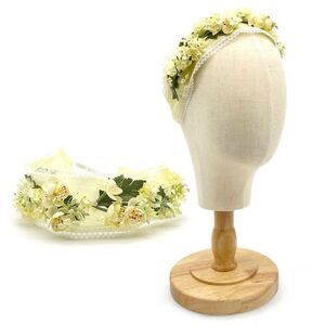 Vintage 1950s Auerbach’s Floral Headband Hat Ivory Lemon Yellow Flowers NEW NOS