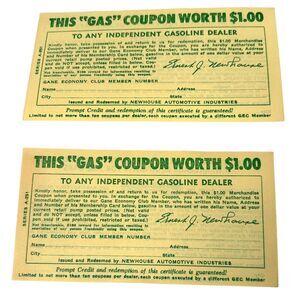 Vintage 1950s Automobile Pamphlet Ad Inserts $1 Gas Coupons Flyers Lot of 7