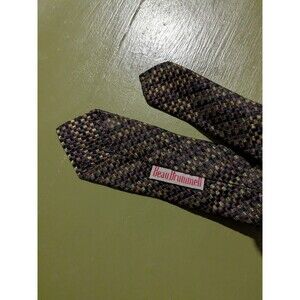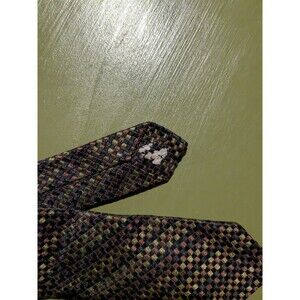 Woven tie in deep green and rusty brown with black is skinny 50s style. Excellent condition. Shiny finish.
