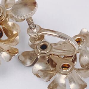 Features: Screw-back findings; dimensional layered petals; open-back rhinestones; lightweight