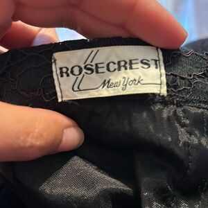 Vintage 1950s Black Lace Lined Midi Pencil Skirt with Belt. Zip and button closure. Pleated kick vent.