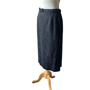Vintage 1950s Black Lace Lined Midi Pencil Skirt with Belt