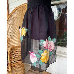 Vintage 1950s Black Organza Floral Applique Half Apron