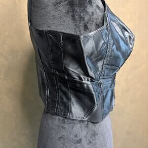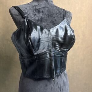 Step into mid-century glamour with this stunning vintage 1950s–1960s black satin longline bra/bustier. Designed in a sleek satin finish with structured seaming and garter tabs, this piece blends lingerie and shapewear, offering both lift and a smooth silhouette. A true vintage lingerie treasure.