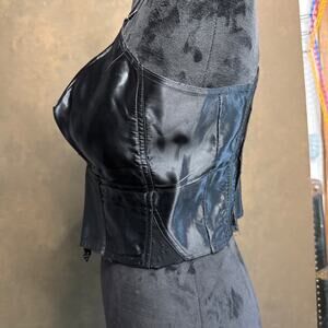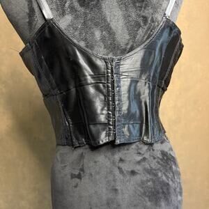 Vintage 1950s Black Satin Longline Bra Bustier w/ Garter Tabs – 34B/36B