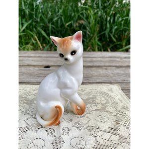 Vintage 1950s Bone China Cat Figurine Orange, white