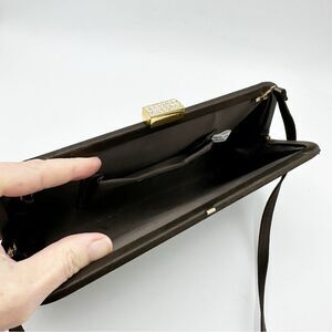 Vintage 1950’s Brown Silky Convertible Evening Clutch Bag Gold Crystal Clasp