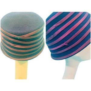 Vintage 1950s Bucket Hat Purple Stripe Floral Hat