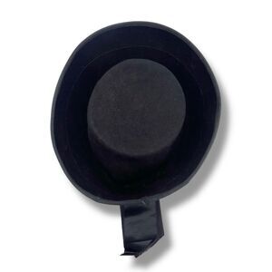 Vintage 1950s Carol Black Velour Breton Hat Wide Satin Band New York Creation
