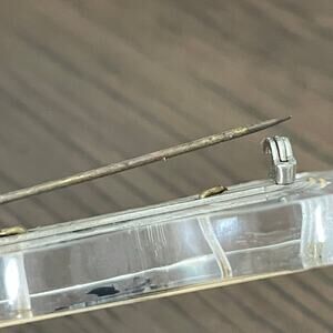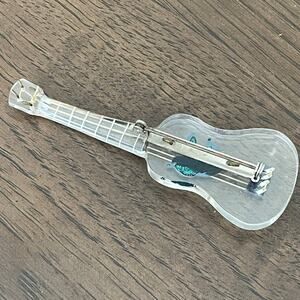 Vintage 1950s Carved Clear Lucite Guitar Brooch Pin w/ Blue Bird C Clasp