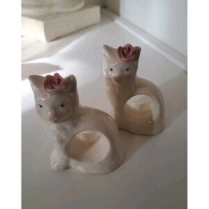 Vintage 1950s Cat Napkin Holder Rings Bone China Set Of Two