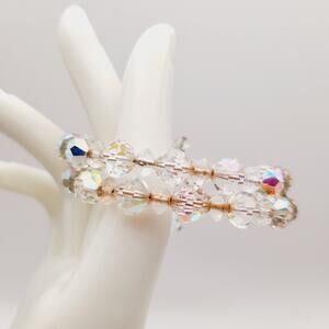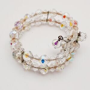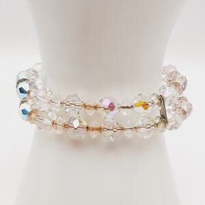 Vintage 1950s Clear Aurora Borealis Crystal Bracelet – Two Strand Memory Wire