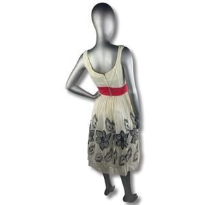 Vintage 1950s Cream Dress with Flocked Floral Skirt Size XS to Small
