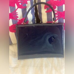 Vintage 1950s Crown Lewis Navy Patent Leather Bag with Gold Detail