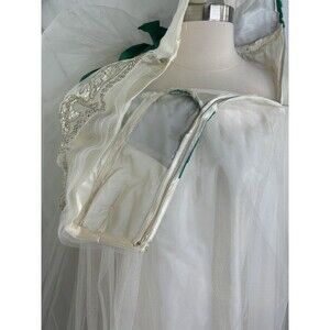 Vintage 1950s Cupcake Prom Dress SZ XS Gown Tulle Strapless white green sequence