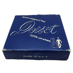 This vintage compact from Dorset Fifth Avenue is a rare find. The design, featuring gold monogrammed initials JBC on a vivid green background, is a testament to the high-quality craftsmanship of the 1950s. The item has not been used and has been kept in excellent condition, making it a valuable addition to any collection.