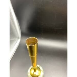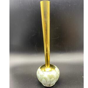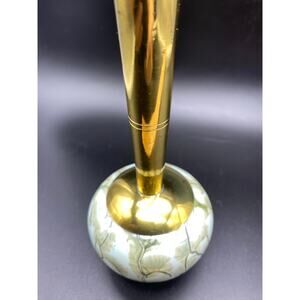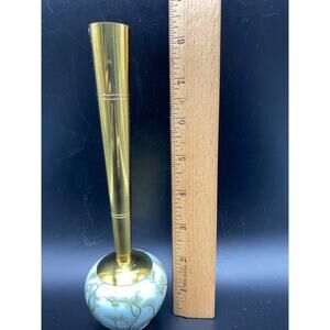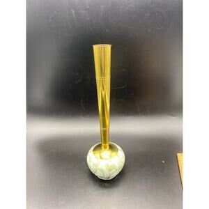A vintage Mid Century Delft handpainted ceramic bud vase with brass stem.