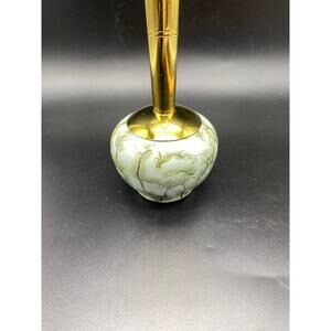 features a beautiful blue/green marble effect glaze to the body, contrasted with a brass fluted stem.