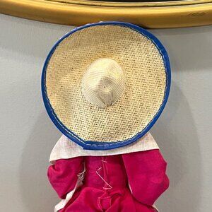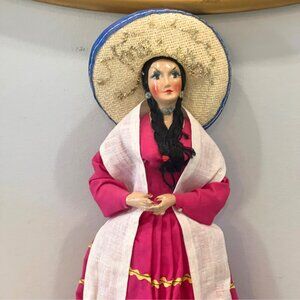 Vintage 1950s Doll Mexican Senorita Lady Sombrero Folk Art Souvenir Hard Plastic