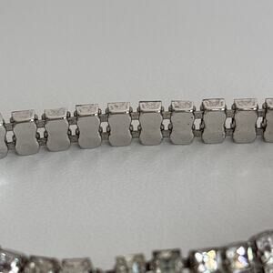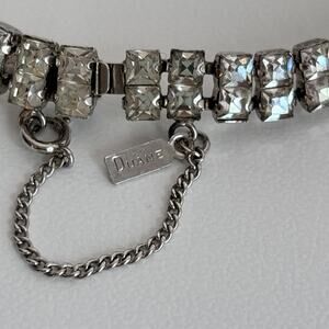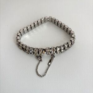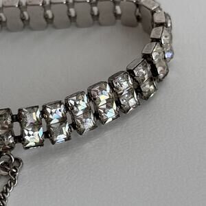 Vintage 1950’s Duane Link Bracelet Safety Chain Rhinestones Silver Tone