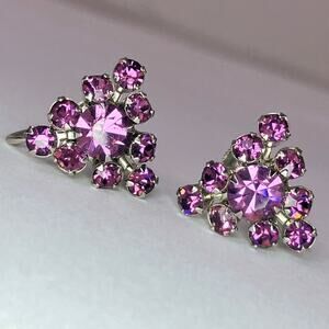 Vintage 1950s Earrings Purple Rhinestone Screw Back Mid Century Jewelry