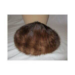 This gorgeous pillbox hat features rich and thick brown mink fur with dark reddish brown long guard hair tips and lighter brown underfur with the fur coming to a point at top of hat.
