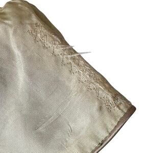 Fair vintage condition. There is severe fraying and visible seam wear at the shoulders, hand repairs at both sleeve caps, and scattered small holes and snags in the skirt (shown). At least one large tear. Interior tag has writing from its use in costume rental. Very small bust.