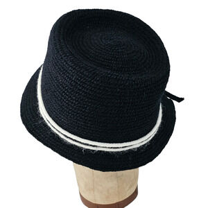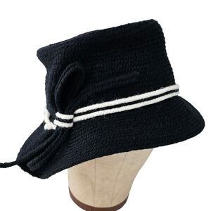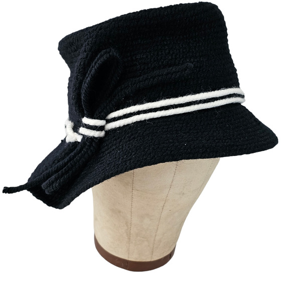 Vintage 1950s Everitt asymetrical black white winter hat pleat chic