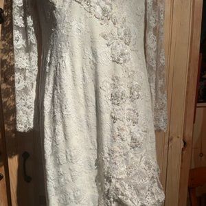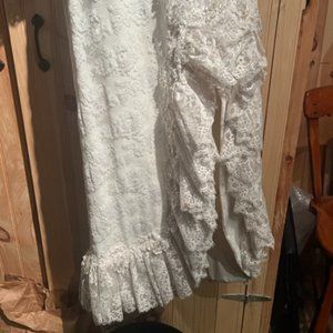 The dress does have a couple of small stains which I think would come out if the dress is dry cleaned. There is also some hand stitching that's unraveling on the inner satin liner