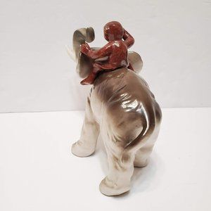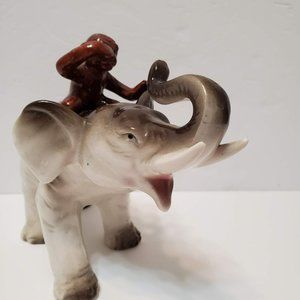 This is a beautiful figurine of an elephant being rode on by his friend the monkey as they journey and navigate the jungle together. There are no cracks, breaks or crazing. There are some minor manufacturer glaze defects. Please see photos for details.
