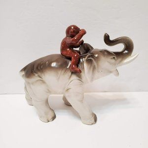 Vintage 1950s Fairyland China Figurine, Porcelain, Monkey Riding an Elephant