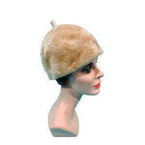 Vintage 1950s Faux Fur Beret Peck & Peck Round Hat