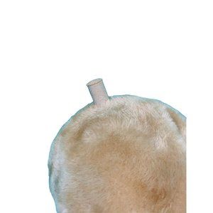 A unique vintage 1950s hat in a beige, faux fur with a grosgrain pointed top. Comes with hat pin.