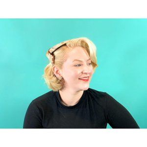 A pretty little vintage 1950s floral cap with a brown and white floral print pattern, round shape, bow across the top and wired holders.