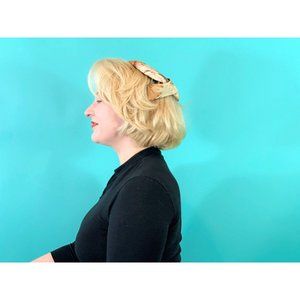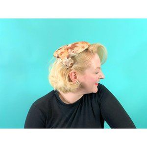 Vintage 1950s Floral Cap Brown Printed Round Hat