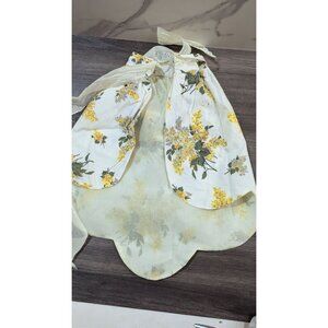 Vintage 1950s Floral Half Apron Yellow Cotton Retro Kitchenware