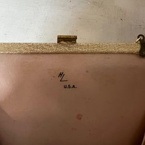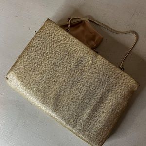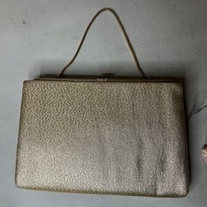 Vintage 1950s Gold Metallic Clutch Purse Kiss Lock Purse Set 50s MCM Pin Up