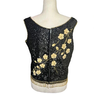 Vintage 1950’s Handbeaded Sequins Top 3D Florals