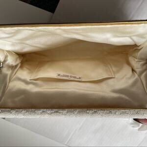 Vintage 1950s Handmade Beaded Bag White Floral Gold Hardware Bridal Wedding EUC