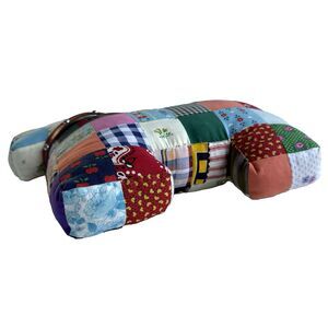 Vintage 1950s Handmade Patchwork Quilt Scottie Dog w Collar Pillow 14X14 Stuffie